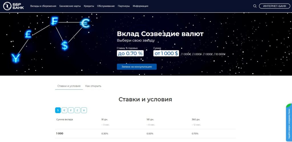 Обратите внимание, что в нашем материале обозначены процентные ставки и основные условия по состоянию на октябрь 2022 года. Когда соберетесь открывать вклад – проверьте на официальном сайте обновленные вклады в ББР банке на сегодня.